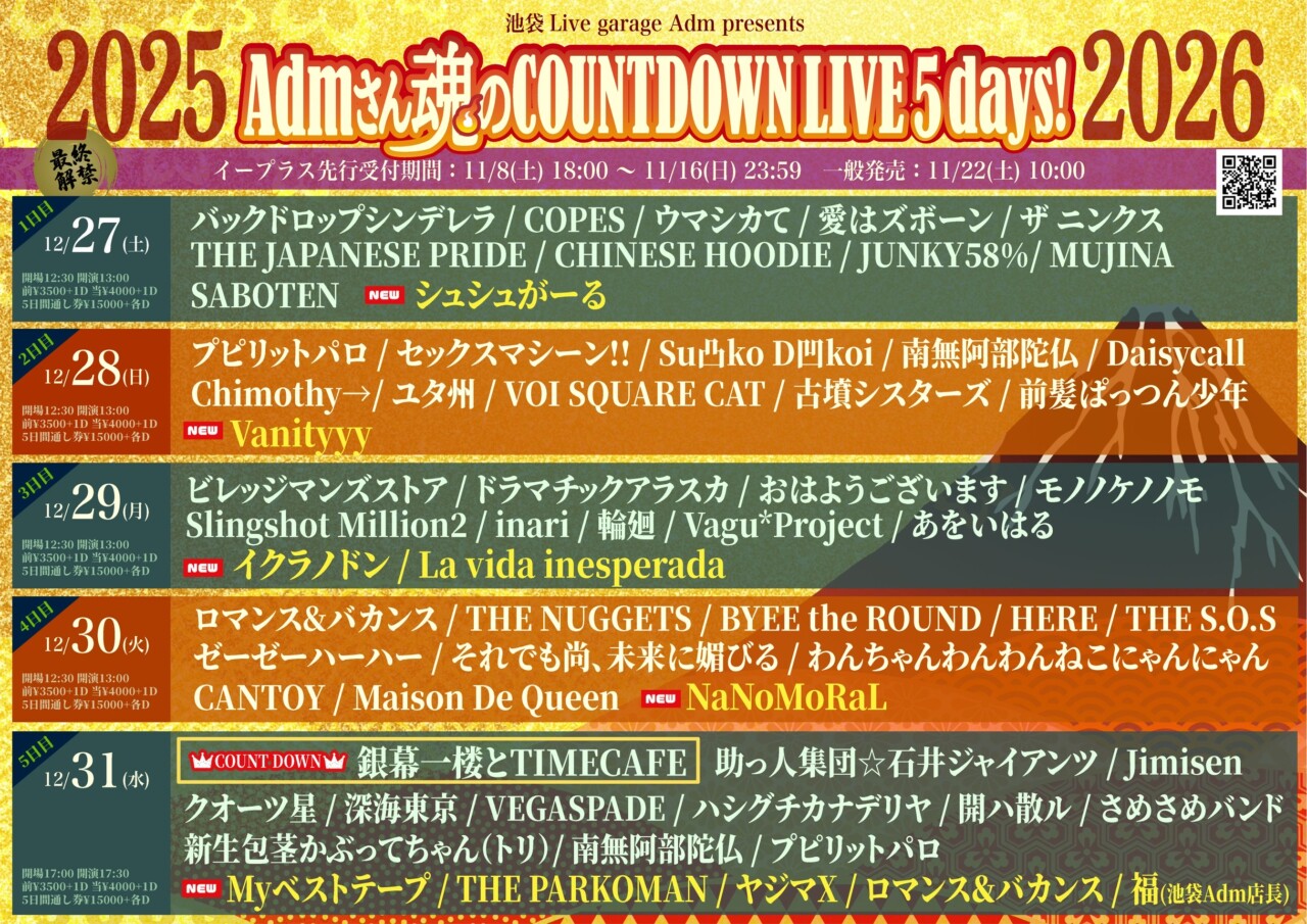 「Admさん魂のCOUNTDOWN LIVE 2025/2026」 チケット予約可